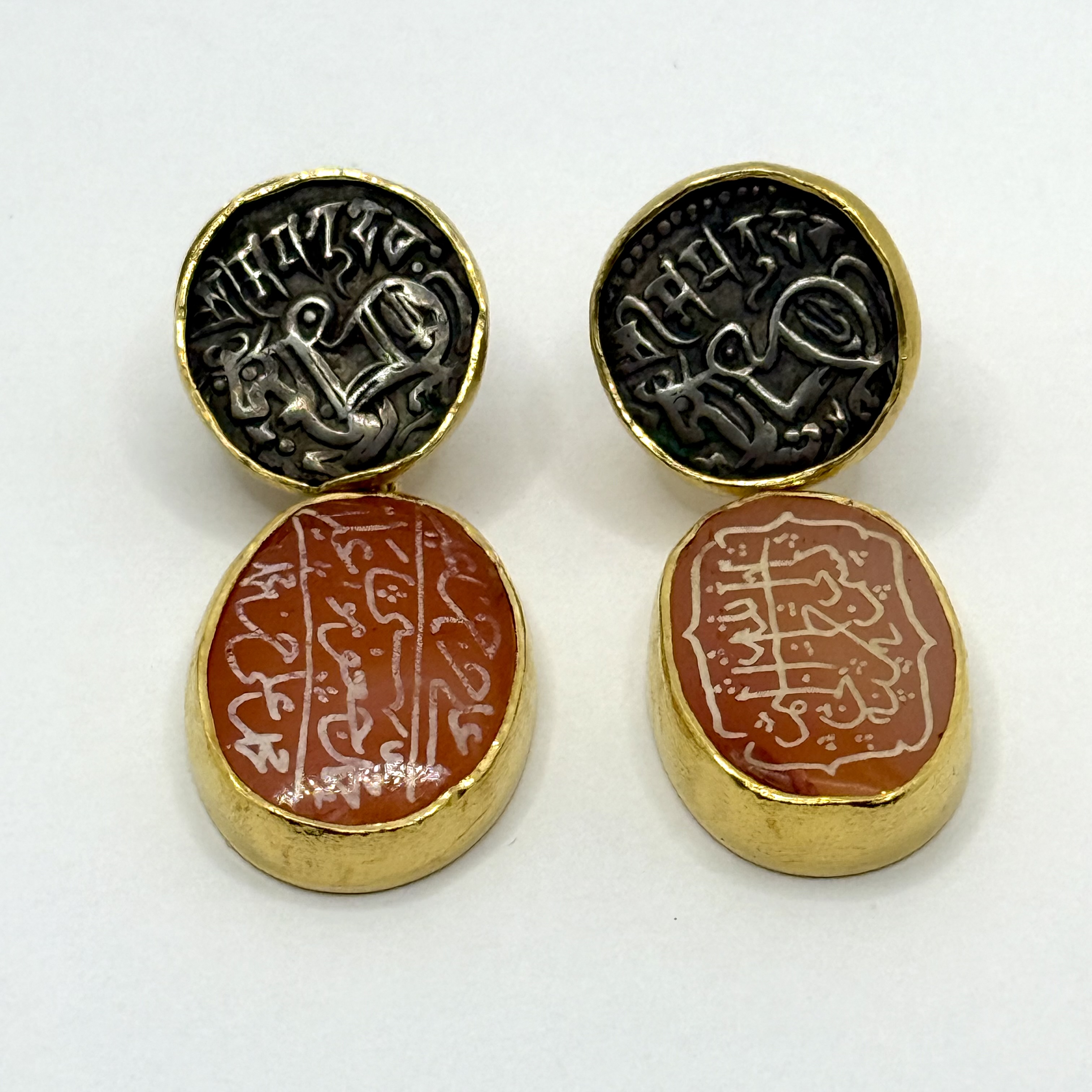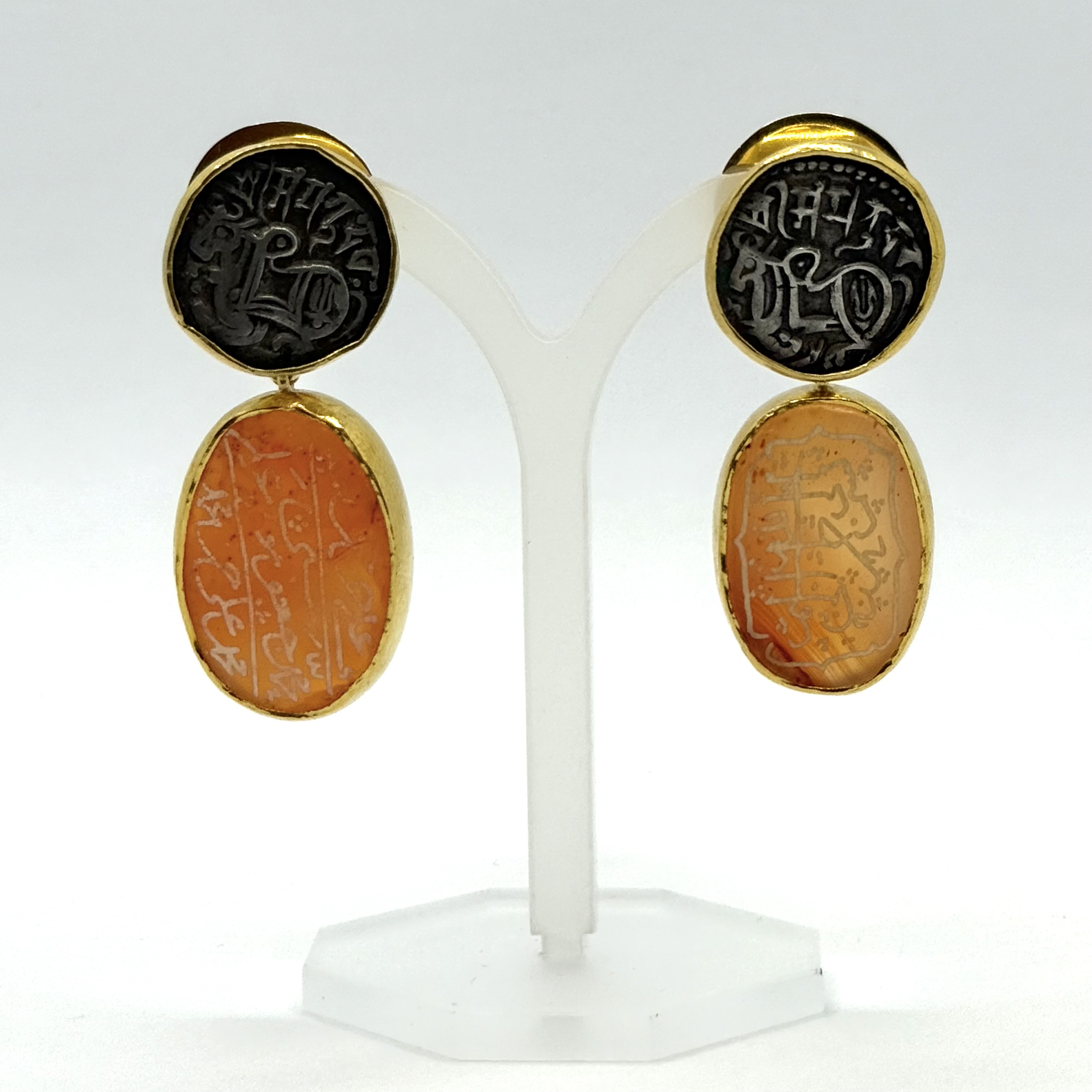 750/1 Paar Ohrhänger mit Fbst und 2 AG/800/ Münzen 34,430 gr