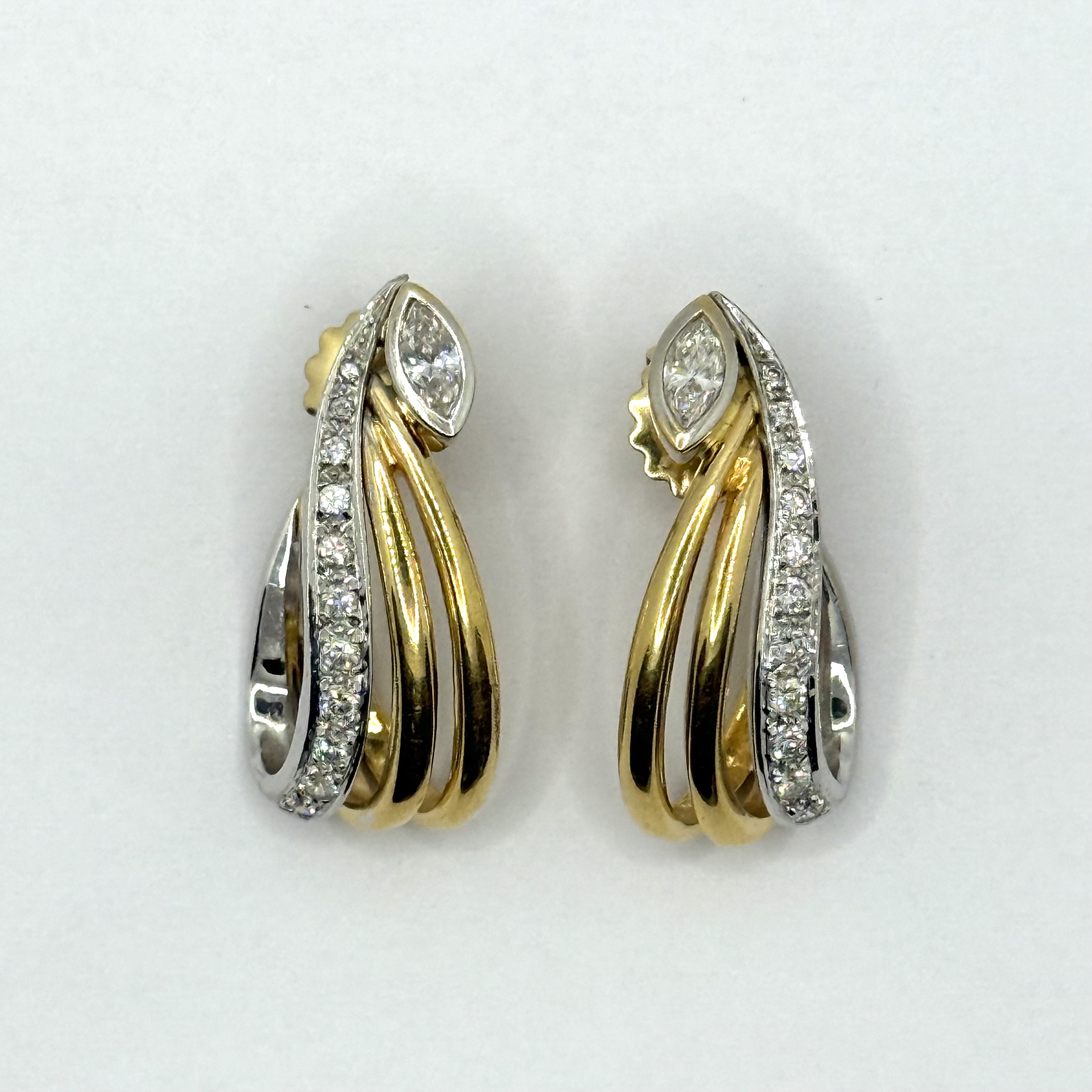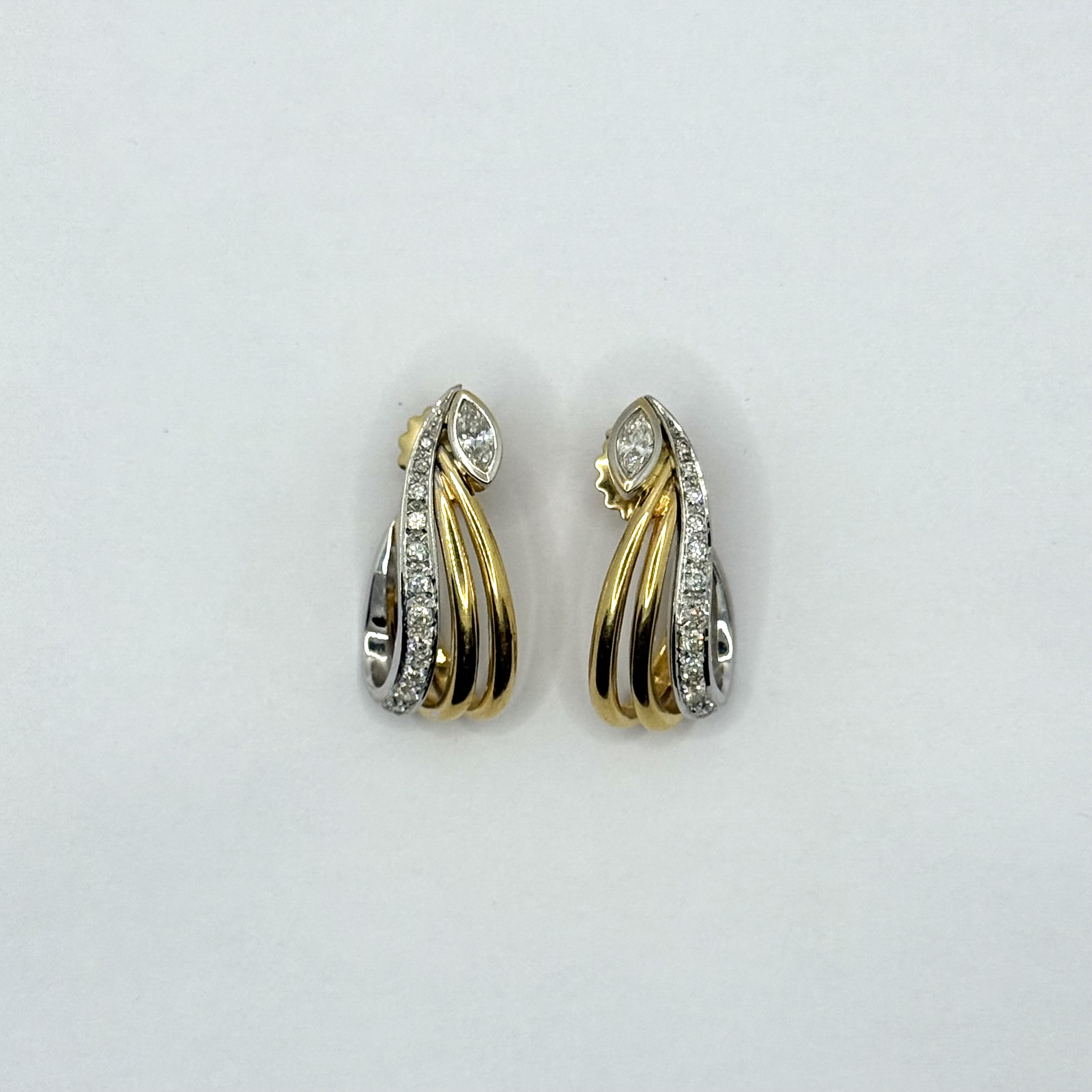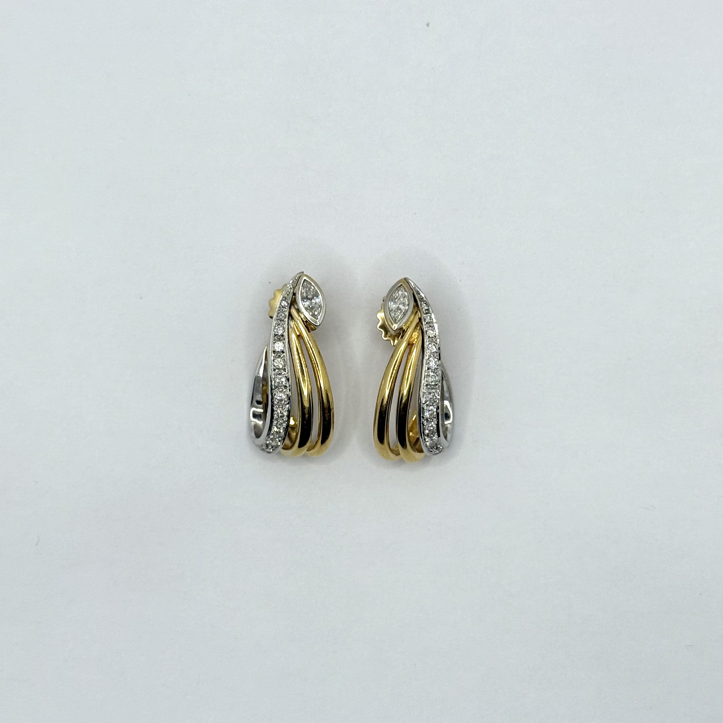 750/ 1 Paar Ohrringe mit Navette Brill ca 0,35ct je Ohrring mit 585 Bresur 16,64